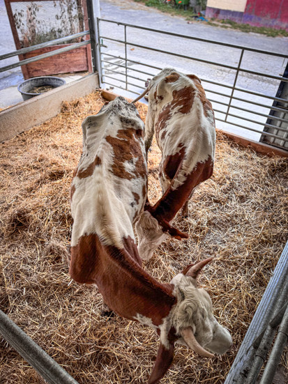 Face aux équipes présentes, les cris et gémissements des animaux résonnaient comme un appel à l’aide. Leur souffrance, palpable, était insoutenable. La majorité présente des corps amaigris, des plaies visibles, et un état de faiblesse extrême. À leur arrivée dans les refuges, Les animaux ont été installés dans des boxes confortablement paillés et le protocole de réalimentation progressive a directement commencé. La plupart des animaux se sont immédiatement couchés, épuisés par des semaines de faim, de soif et de privations. Certains ne font que dormir, comme s’ils n ’avaient plus la force de lutter.